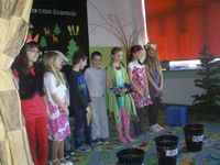 22 kwietnia z okazji Dnia Ziemi uczniowie klasy III zaprezentowali wszystkim dzieciom naszej szkoły przedstawienie pod tytułem „Bajka o Jasiu Śmiecialskim”. Mali wykonawcy poprzez inscenizację chcieli uwrażliwić swoich kolegów na piękno przyrody. Pokazali, jak należy zachować się w lesie i czego robić nie wolno. Zwrócili też uwagę na zagrożenia środowiska i potrzebę segregacji śmieci. Przedstawienie zostało nagrodzone brawami. Mamy nadzieję, że wszyscy będą dbać o nasz wspólny dom – Ziemię |